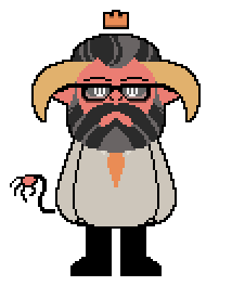 Quill is the Head of the Gluttony Department, promoted shortly after Whiskey stepped down from the position. the job has taken a toll on his physical and mental health,Quill has a vibe similar to that of an overworked father, chronically tired and impatient. while generally kindhearted in nature, he doesn't have time to be concerned with others, and can come across as blunt or uninterested.on the rare occasion he actually gets time to himself, he'll likely be found lazing about his apartment, sitting on the couch in his favorite bathrobe, watching television and eating junk food.